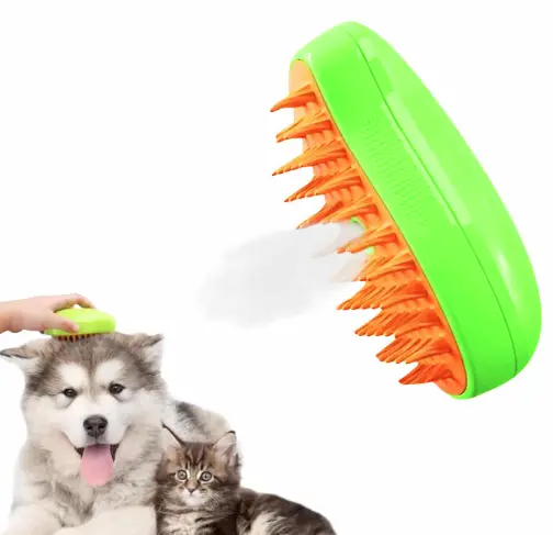 3. Suave para la piel de las mascotas: el cepillo de vapor para gatos tiene cerdas suaves y extremos redondeados, lo que garantiza que la piel de su mascota no se dañe durante el aseo.