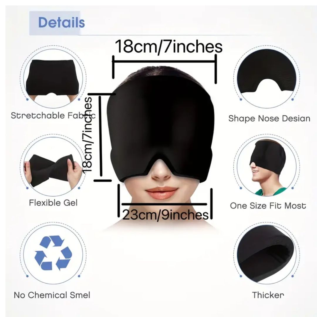 Gorro para alivio de migrañas, diseño ajustado Gorro de hielo para alivio de dolores de cabeza sinusitis y estrés. Alivia de la tensión Ojos hinchados.