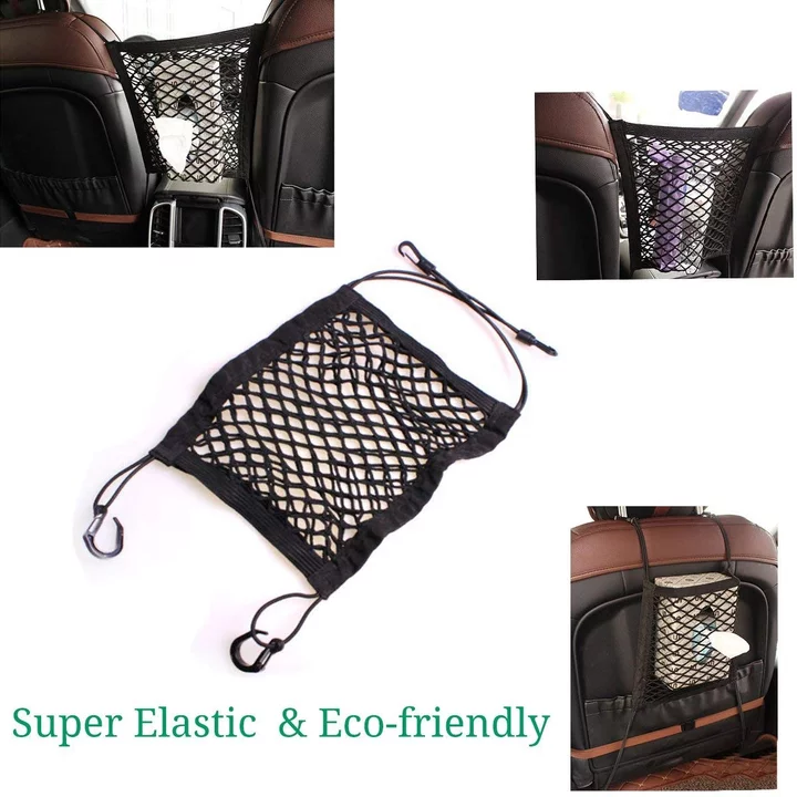 Malla elástica de seguridad para Auto y/o Coche - Divisor de coche entre asientos, barrera para mascotas, bolsa de malla elástica, organizador de accesorios para coche.