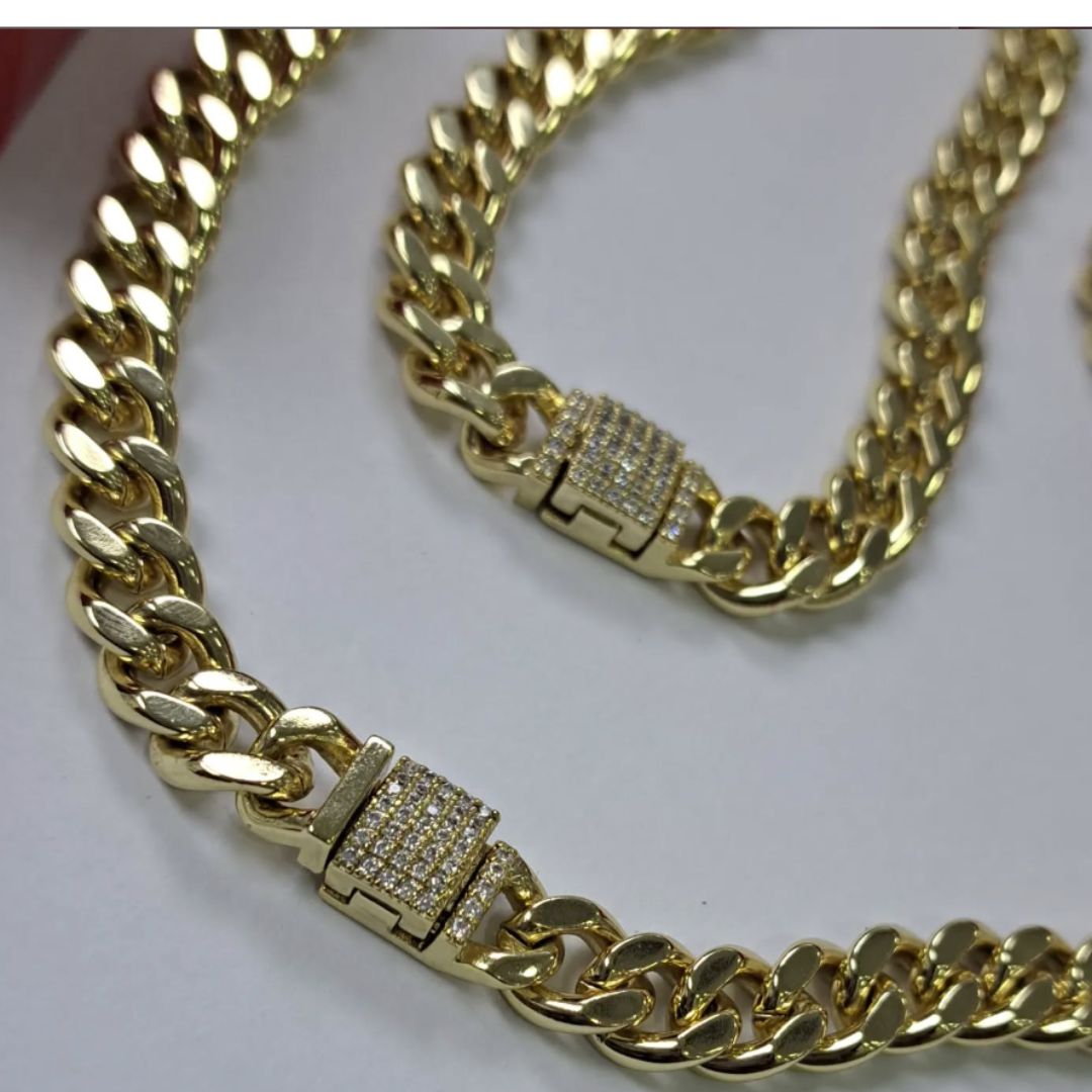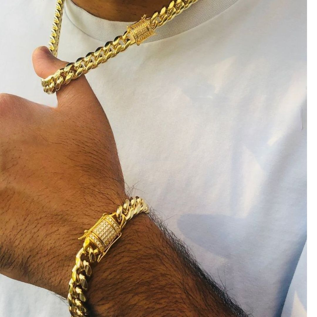 Material : composición de Acero y titanio con una capa de Oro puro que hace que la prenda sea dure más que la joyería convencional.